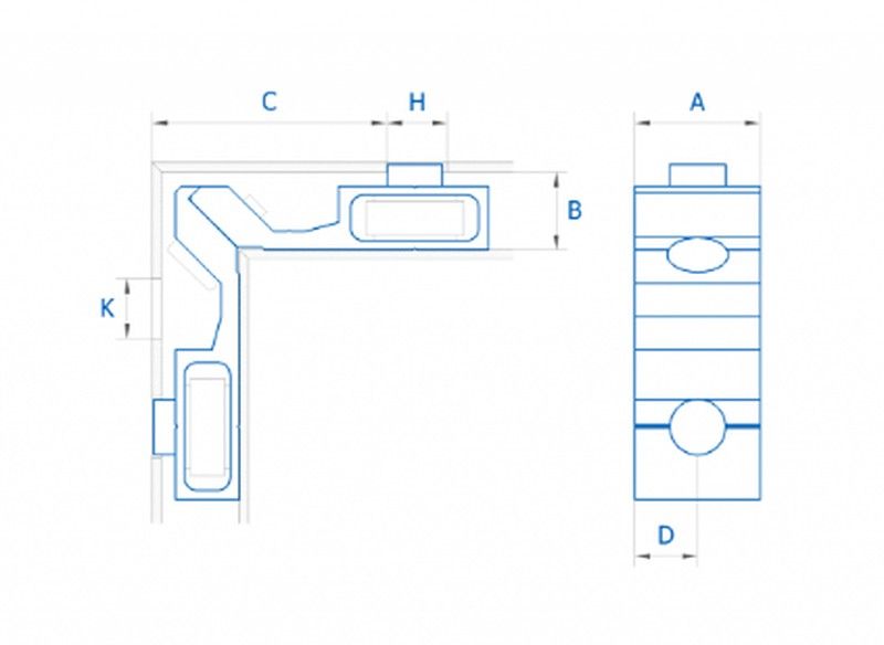 Disponibles en escuadras de fundición y de extrusión. Las escuadas de pivotes de extrusión permiten una mayor simplicidad respecto a las de fundición en la mecanización del perfil gracias a la unificación de la distancia de tiro.